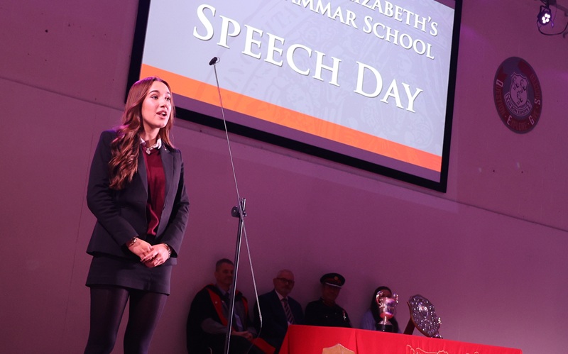 Mr Moore, Chair of the Local Governing Body, opened the event with a warm welcome, followed by our Headteacher, Mr Garrity, with an engaging presentation reflecting on the year’s achievements. Mrs Allen, Head of Sixth Form, then announced the prize winners, with awards presented by our guest of honour and former QEGS student, Claudia Sherry. In her inspirational address, Claudia shared memories of her time at QEGS and spoke about her journey since leaving school, offering words of encouragement to current students.